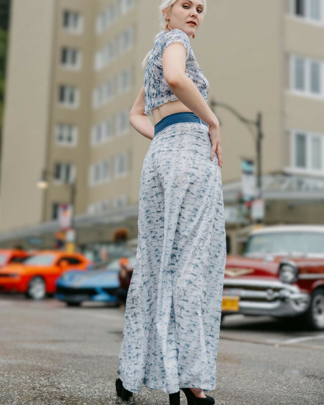 Soft watercolor birch bark designs, hint of elegance in a high waist and billowing wide legs. Side seam zipper.