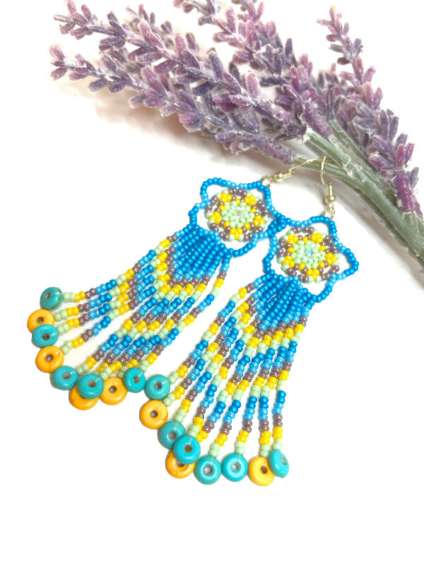 Description: Bluebird Top with Fringe Beaded Earrings