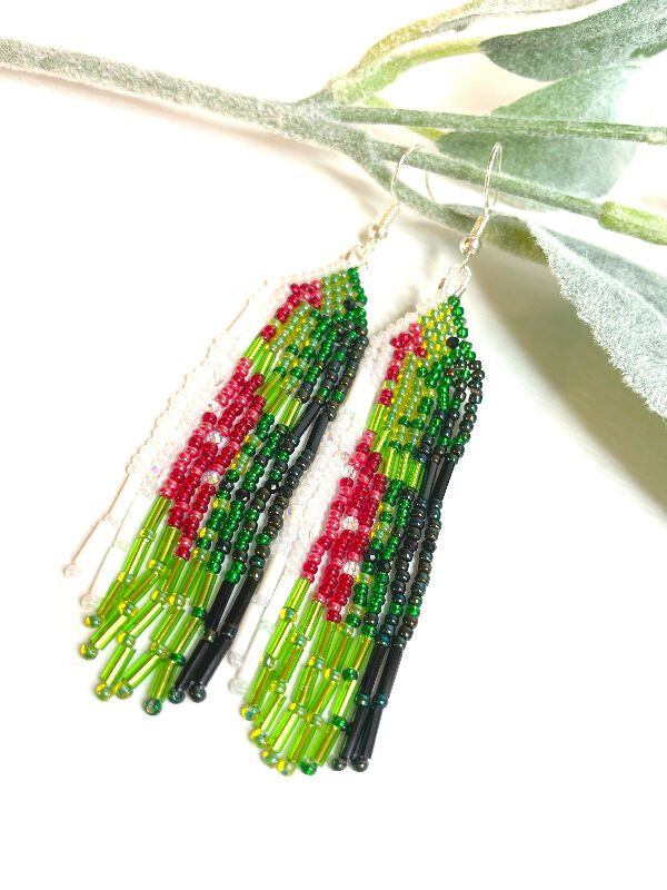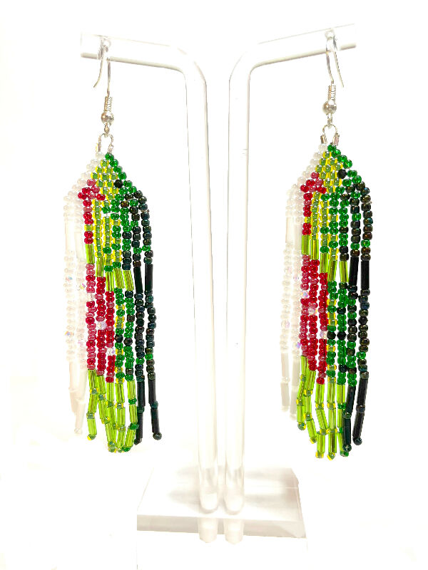 Description: Salmon Brick Stitch with Fringe Beaded Earrings